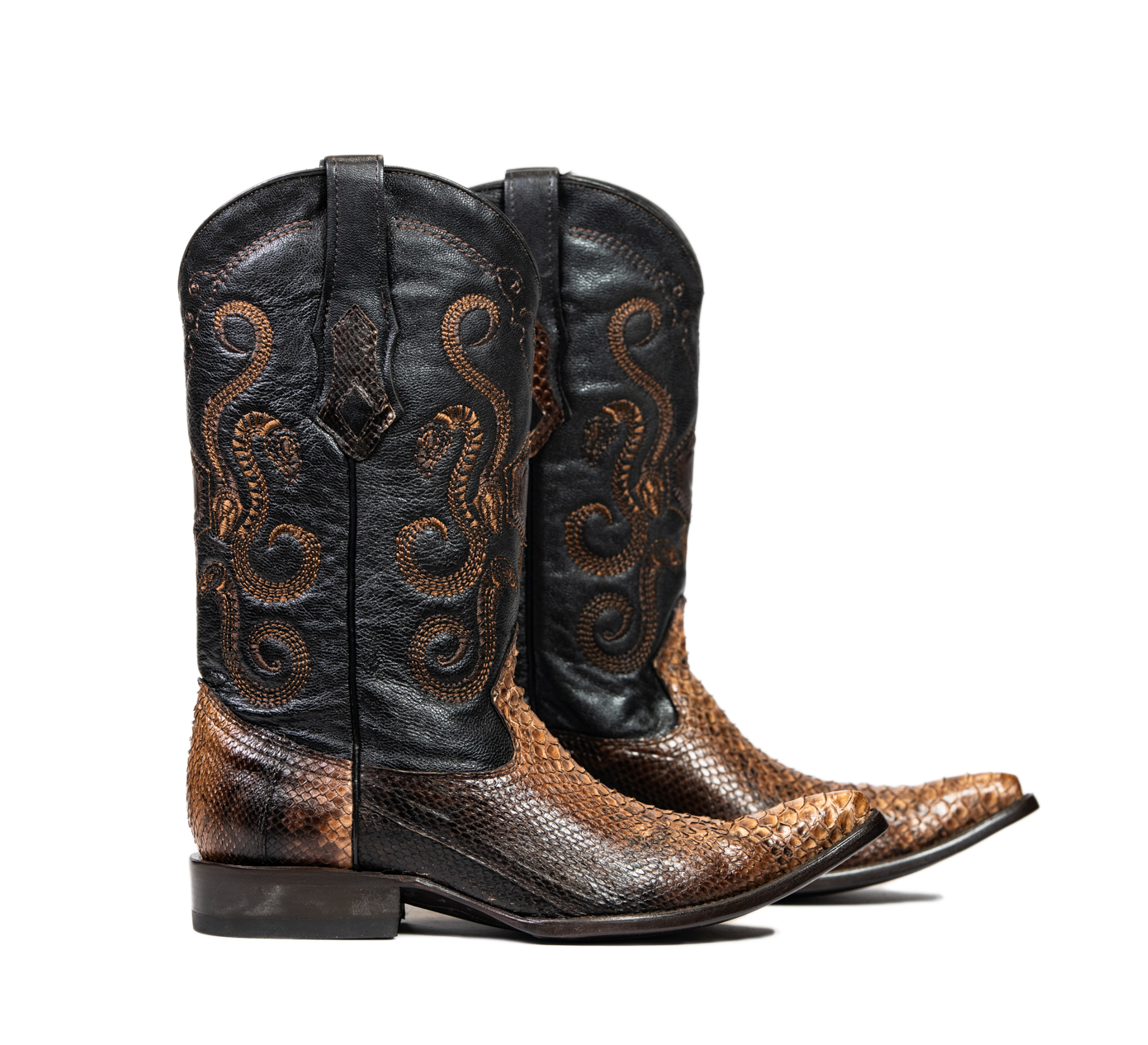 Een tijdloze Westernboot van Cuadra in bruin python leer met bruin leer voor heren.