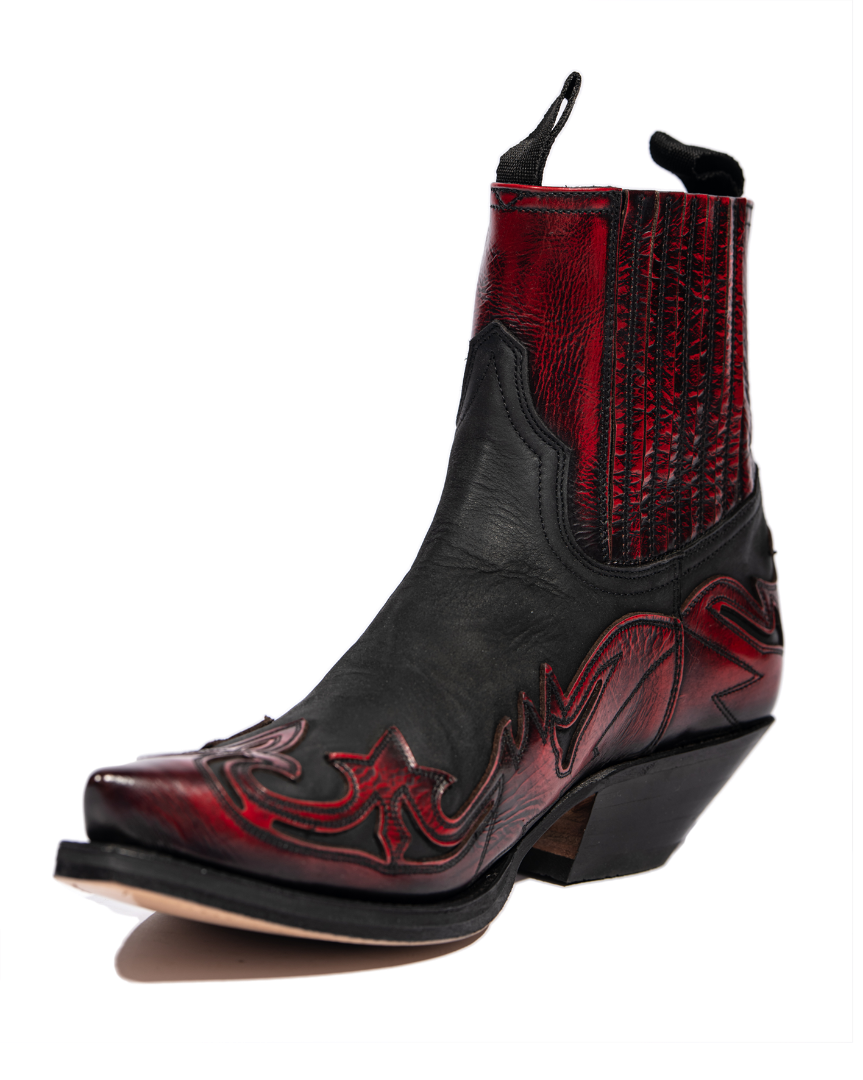 Een goede lage cowboylaars is niet meer weg te denken uit je garderobe. Dit model is gemaakt van een prachtige kwaliteit zwart kleurig nubuck en rood glad leer. Door de neutrale afwerking zijn ze draagbaar onder elke outifit. Deze laarzen hebben een spitse punt en elastiek aan de schacht om het aantrekken makkelijk te maken.