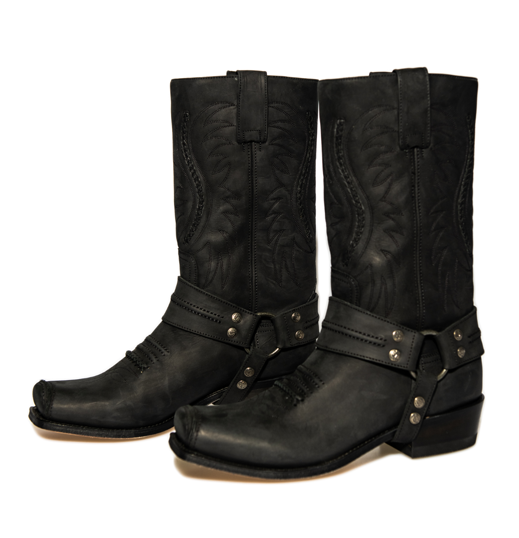 Een tijdloze Bikerboot van Sendra in mat zwart leer voor dames en heren.